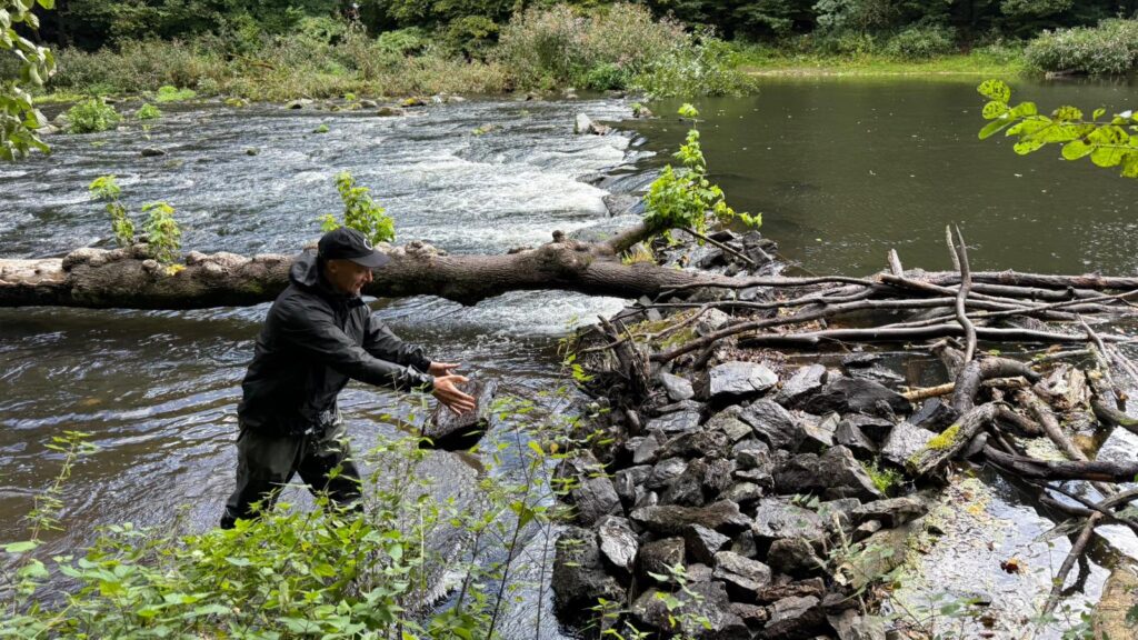 Am Wehr oberhalb des Vereinsheim wurden wie schon vor einiger Zeit wieder schwere Steine umgeschichtet. Arndt Kretschmann hatte das seinerzeit auch schon einmal gemacht. Wichtig bei dieser Arbeit war das nach der Umschichtung am Wehr wieder mehr Wasser in die Gräben unterhalb des Vereinsheims einströmen kann. Was auch erreicht wurde.