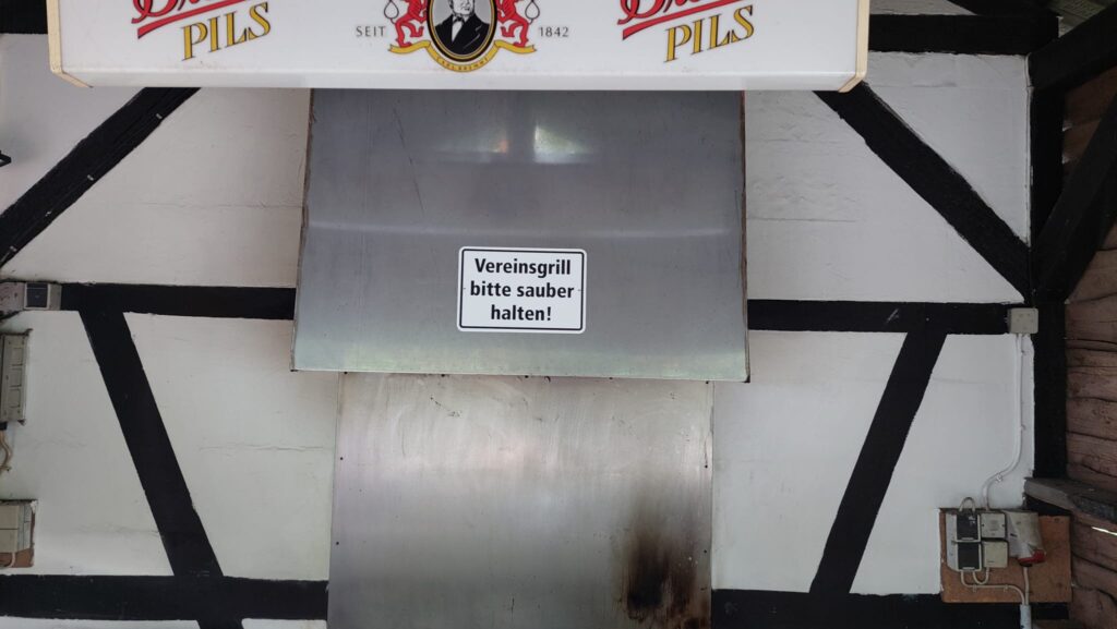 Georg unser Arbeitsdienstleiter hatte wieder eine sehr gute Idee, in dem er neue Schilder für die Außenanlage angefertigt hatte. Die sehen Top aus. Das sind zum einen ein neues Schild für den Parkplatz, zwei neue Schilder “Betreten Vereinsgelände verboten”, sowie ein Schild, doch bitte den Grill nach dem jeweiligen Gebrauch zu säubern. Wobei das alte Parkschild zunächst abmontiert werden musste, es mussten zunächst alte Verschraubungen weggeflext werden, da die alten Verschraubungen sich zum Teil nicht mehr abschrauben ließen. Anschließend wurde das neue Parkschild angebracht.