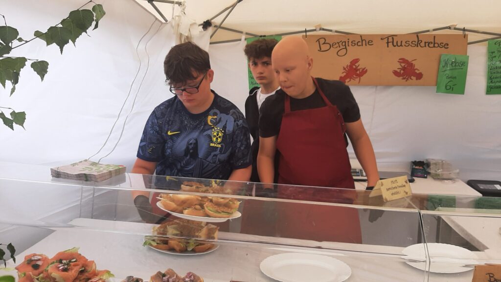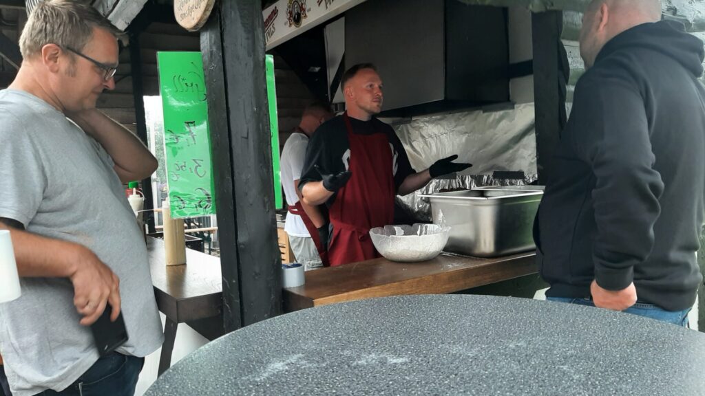 Diesmal hatten wir uns entschieden die Vereinsmitglieder um selbstgebackenen Kuchen zu bitten. Ehrlich gesagt hatten wir nicht damit gerechnet dass dann 38 Kuchen zusammenkommen kommen. Das sah nach viel Kuchen für 2 Tage aus. Aber selbst gebackener Kuchen schmeckt eben besser als gekaufter. Und so war am Sonntag der Kuchenstand bereits um 16.00 Uhr ausverkauft. Damit hatten wir nicht gerechnet. Das gleiche galt auch für den Lachsgrillstand, den Fischverkauf, den Backfisch, alle waren in etwa um die gleiche Zeit ausverkauft. Lediglich bei dem Krebsverkauf gab es einen Restbestand da die Gasheizung am ersten Tag gegen Mittag ausgesetzt hatte und wir für den zweiten Tag einen mobilen Gaskocher organisieren mussten.