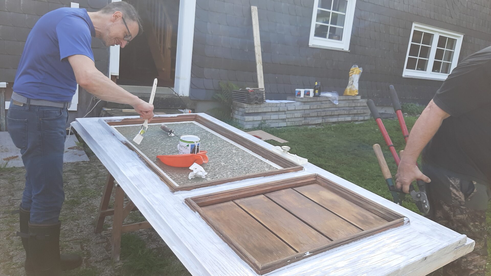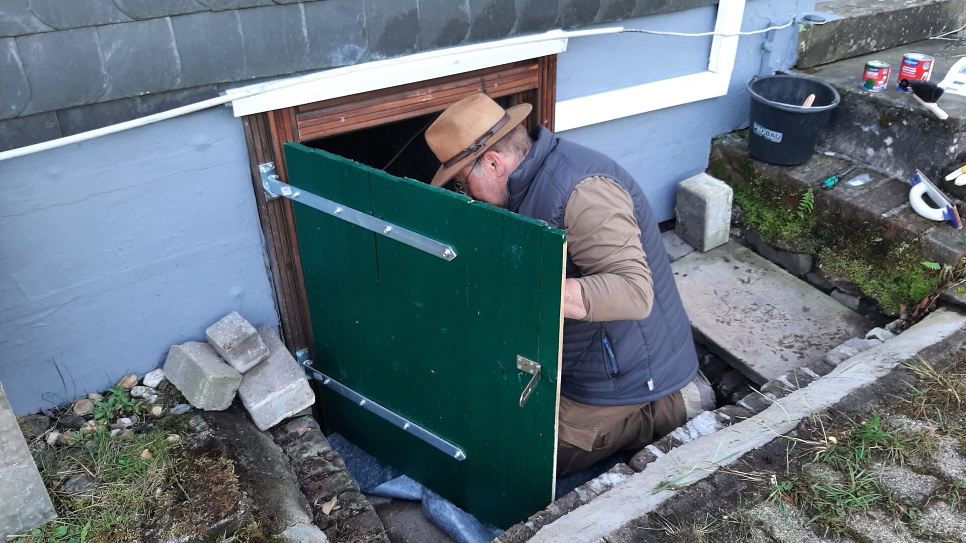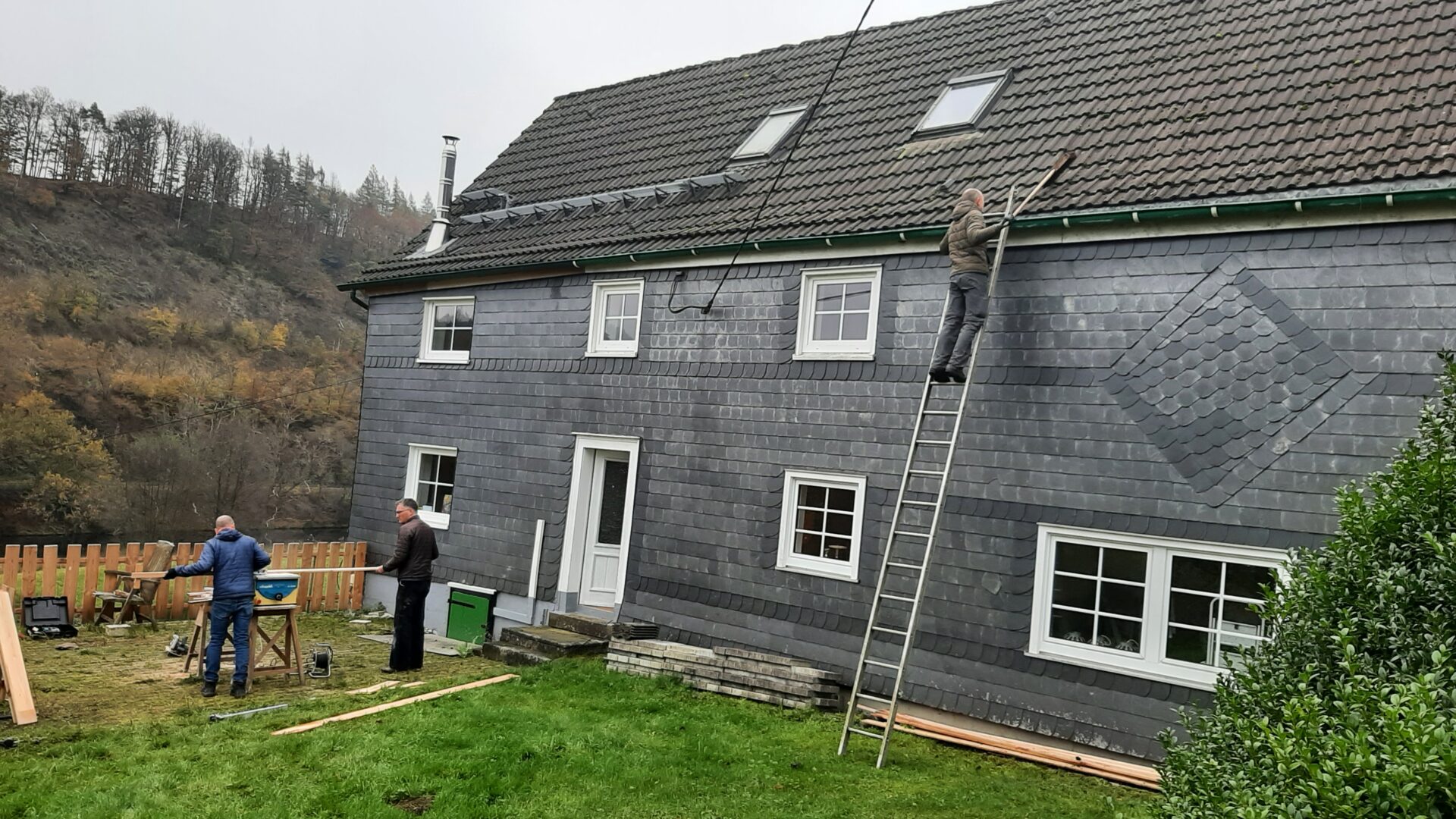 Sechs Vereinsmitglieder waren diesmal im Einsatz. Auf der seinerzeit aufgetragenen Sockelabdichtung ist auf der Hofseite von dem großen Raum bis…